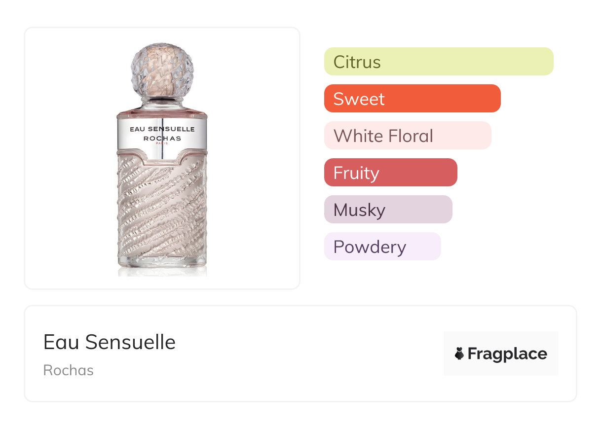 Eau Sensuelle od Rochas zostały wydane w 2009 roku. Perfumiarzem tej kreacji jest Jean-Michel Duriez. Zawiera nuty głowy: Bergamotka, Krwawa pomarańcza, and Mango, nuty serca: Jaśmin, Kwiat pomarańczy, and Orris Root, and nuty bazy: Suszone owoce, Piżmo, and Różowy pieprz.