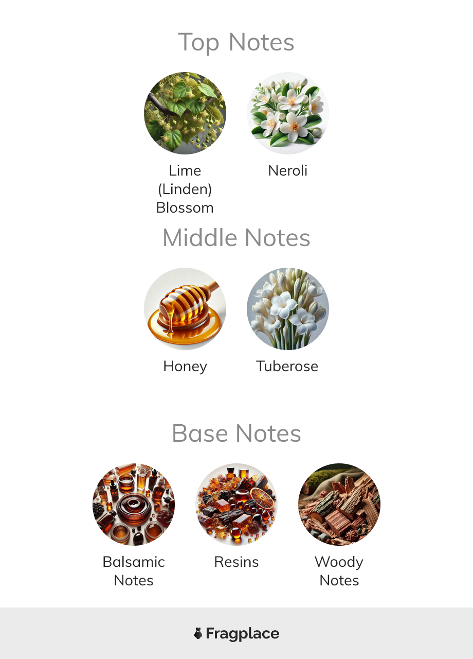 Linden, da Air & Weather foi lançado em 2023. O perfumista por trás desta criação é Julia Crowe. Possui as notas de saída de Tília (Linden) Blossom and Neroli, notas de coração de Mel and Tuberosa, and notas de fundo de Notas Balsâmicas, Resinas, and Notas amadeiradas.